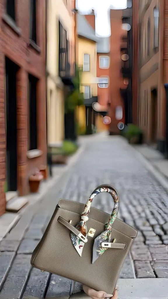 Lustmia Luxury Taupe 100% Leather Structured Tote Bag – Gold Hardware Handbag