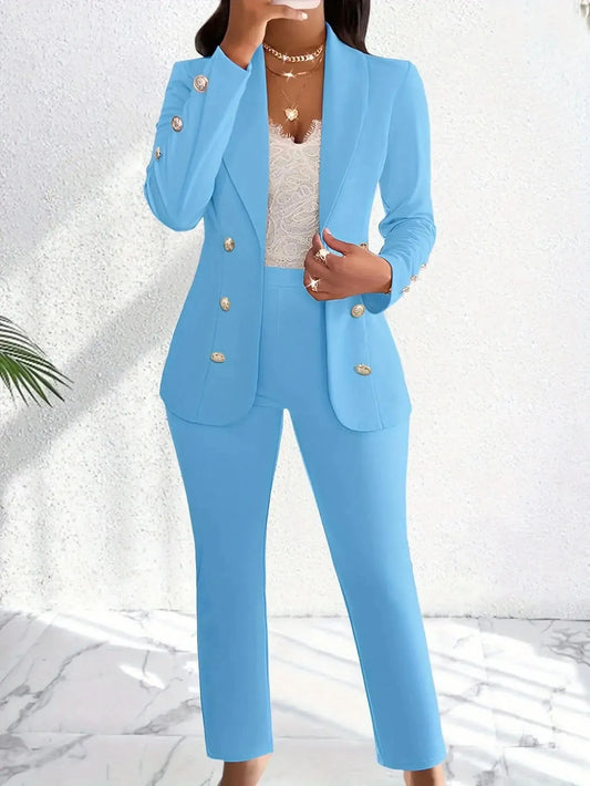 Chic Double Breasted Pantsuit Slim Fit Office Essential - Por Lustmia