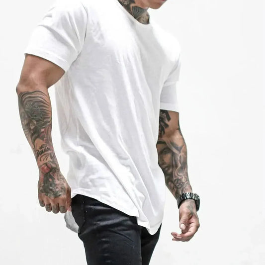 Camiseta masculina cores sólidas casual treino camisas bainha curva camiseta masculina moda streetwear 3XL